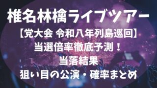 椎名林檎のライブツアー「党大会 令和八年列島巡回」2026のチケット倍率を徹底予想。Xフォロワー数から応募者数を試算し、倍率が高い公演・当たりやすい日程を表付きで解説。複数公演応募や平日狙いなど当選率を上げる戦略も紹介。初日や土日は何倍?遠征の準備もこれで安心!