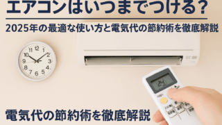 日常 エアコンはいつまでつける?2025年の最適な使い方と電気代の節約術を徹底解説! エアコンはいつまで使うべき?2025年の気候や電気代事情に合わせた最適な使い方を徹底解説。冷房・暖房の切り替え時期や設定温度、省エネ運転やタイマー活用などの節電術を紹介。電気代を抑えながら快適さを維持するコツや、家庭でできる節約テクニックも網羅。今年のエアコン使用の目安と賢い節約方法がわかる完全ガイド。 2025.08.12 日常